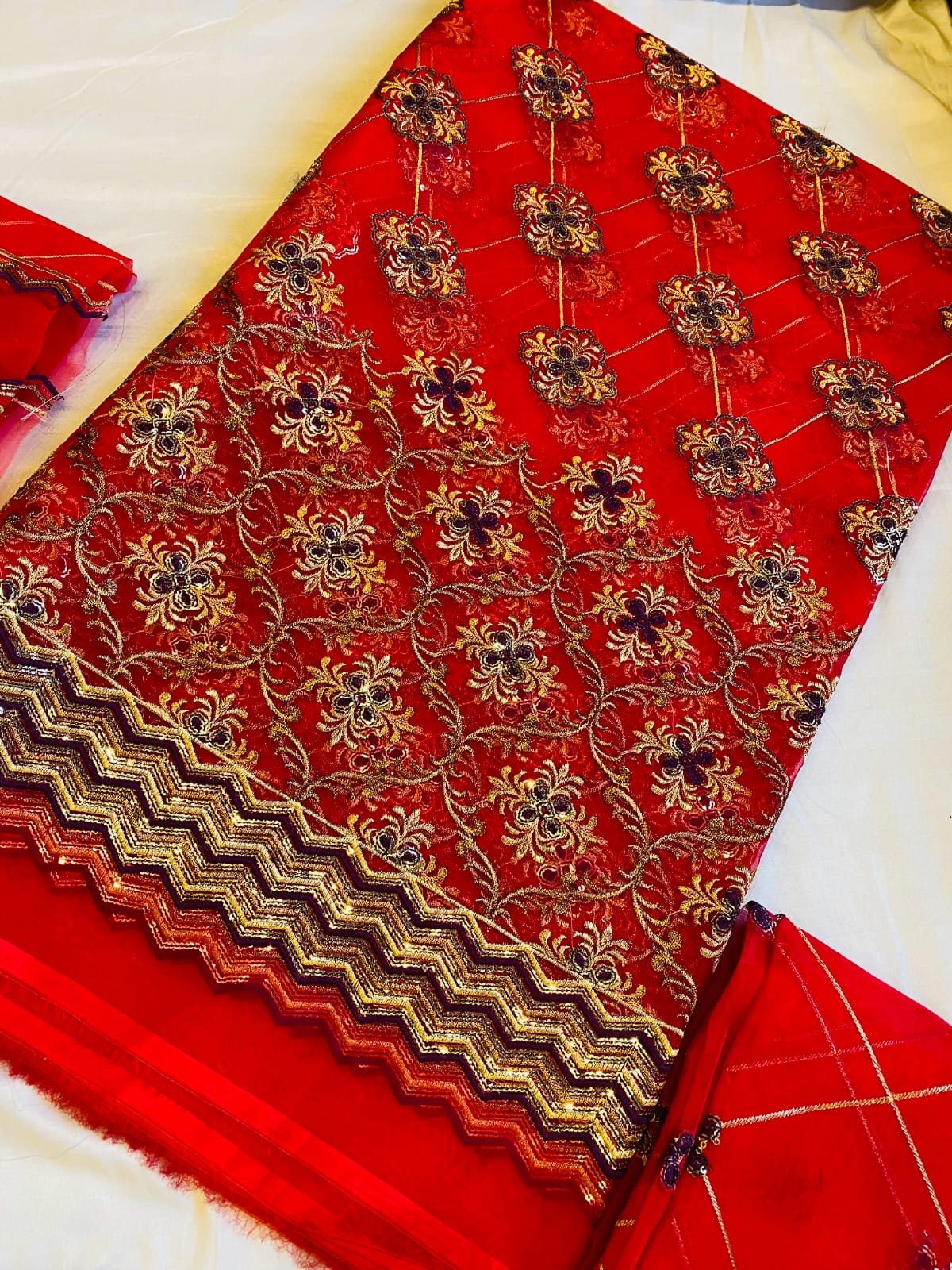 Each element of the design is thoughtfully composed to create depth and dimension, with delicate threadwork that enhances the overall texture and richness of the fabric. The refined silhouette is tailored to offer both comfort and sophistication, ensuring a graceful drape and flattering fit. Carefully finished edges and detailed embellishments further elevate its luxurious appeal.